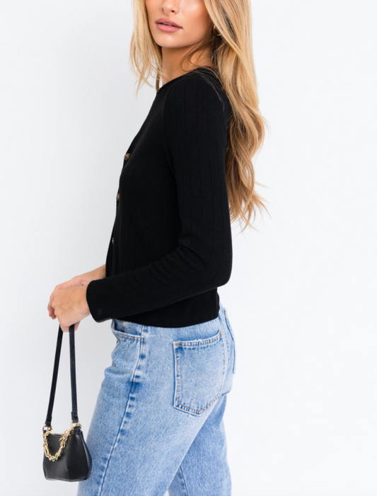 OfertaV Neck Ribbed Knit Top